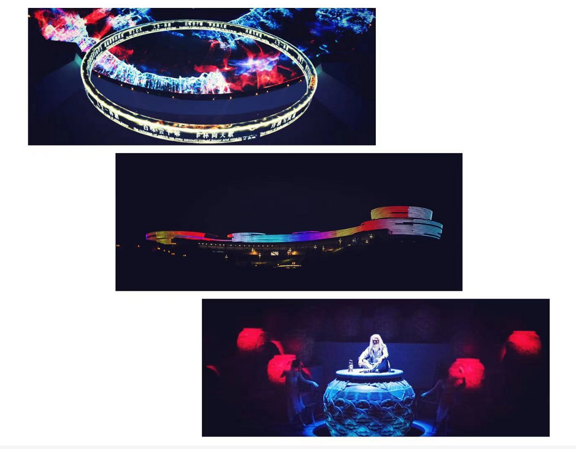 茅台天酿景区位于中国酒都——茅台古镇,与茅台酒厂一河之隔的西山公园山顶。项目总用地面积76186.6平方米,总建筑面积22360.56平方米。景区分为演艺剧场、灯光索道和观景平台。主体项目《天酿》剧场主要由天赐、天启、天路、天遇和天宴五个分剧场构成。剧场建筑外立面创作思路源于酒碗、酒坛和山地梯田,高高耸立在西山公园山顶,像是举杯欢迎远道而来的朋友。剧场外立面的线条就像一圈圈树木的年轮,象征着悠久的酱香酒文化历史。
